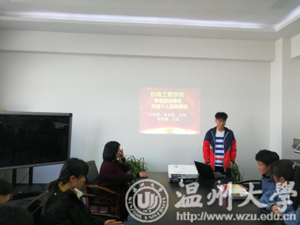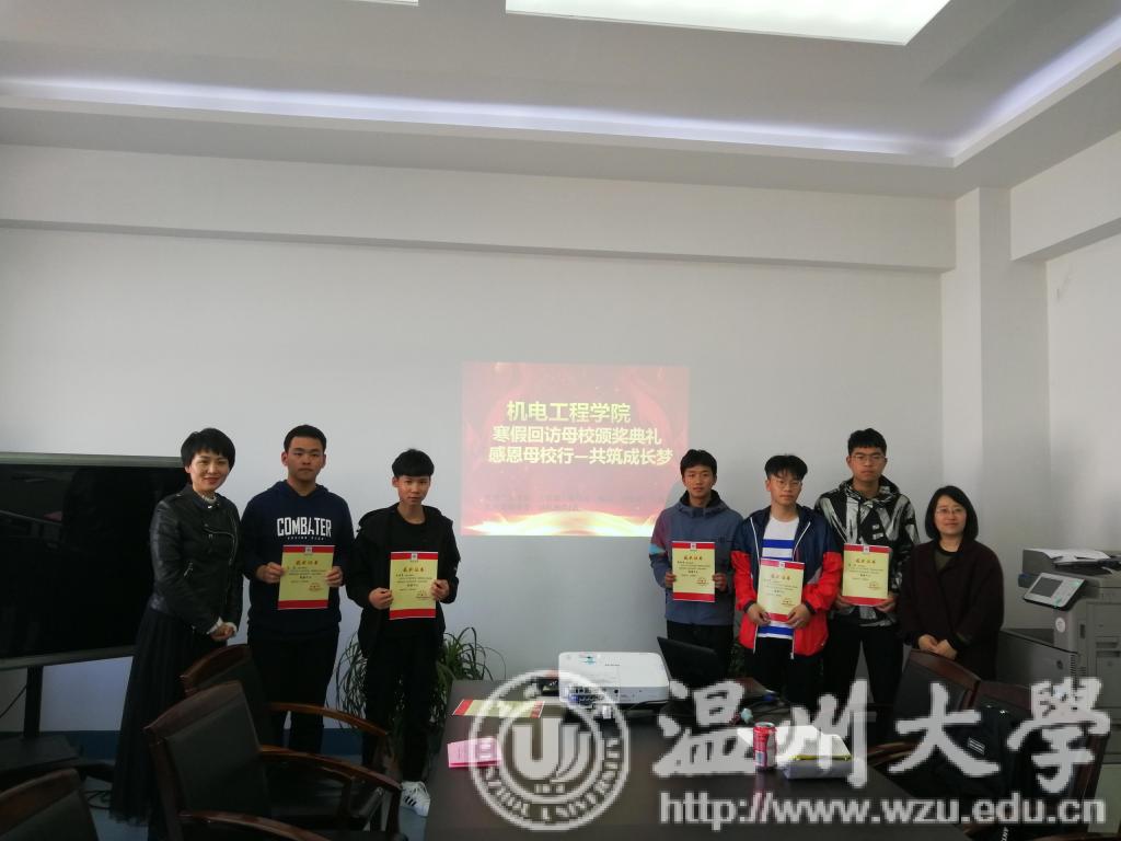 典礼开始,由李书记为五位先进个人以及优秀班级团体代表颁奖,并合影留念。李书记对他们的成果表示了赞许和肯定。先进个人随后发表了自己在活动过程中的感悟。寒假期间,机电学子回到母校,向自己的学弟学妹介绍了我们色情小说 ,既锻炼了自己的能力,也能帮助学弟学妹们进一步了解高考志愿填报。此次活动对温大和色情小说 来说也是一个很好的宣传机会,寒假回访母校社会实践活动在色情小说 学子努力下圆满完成。因此学院也为活动的先进个人及优秀团队举行了颁奖活动,对他们的表现表示肯定和鼓励。