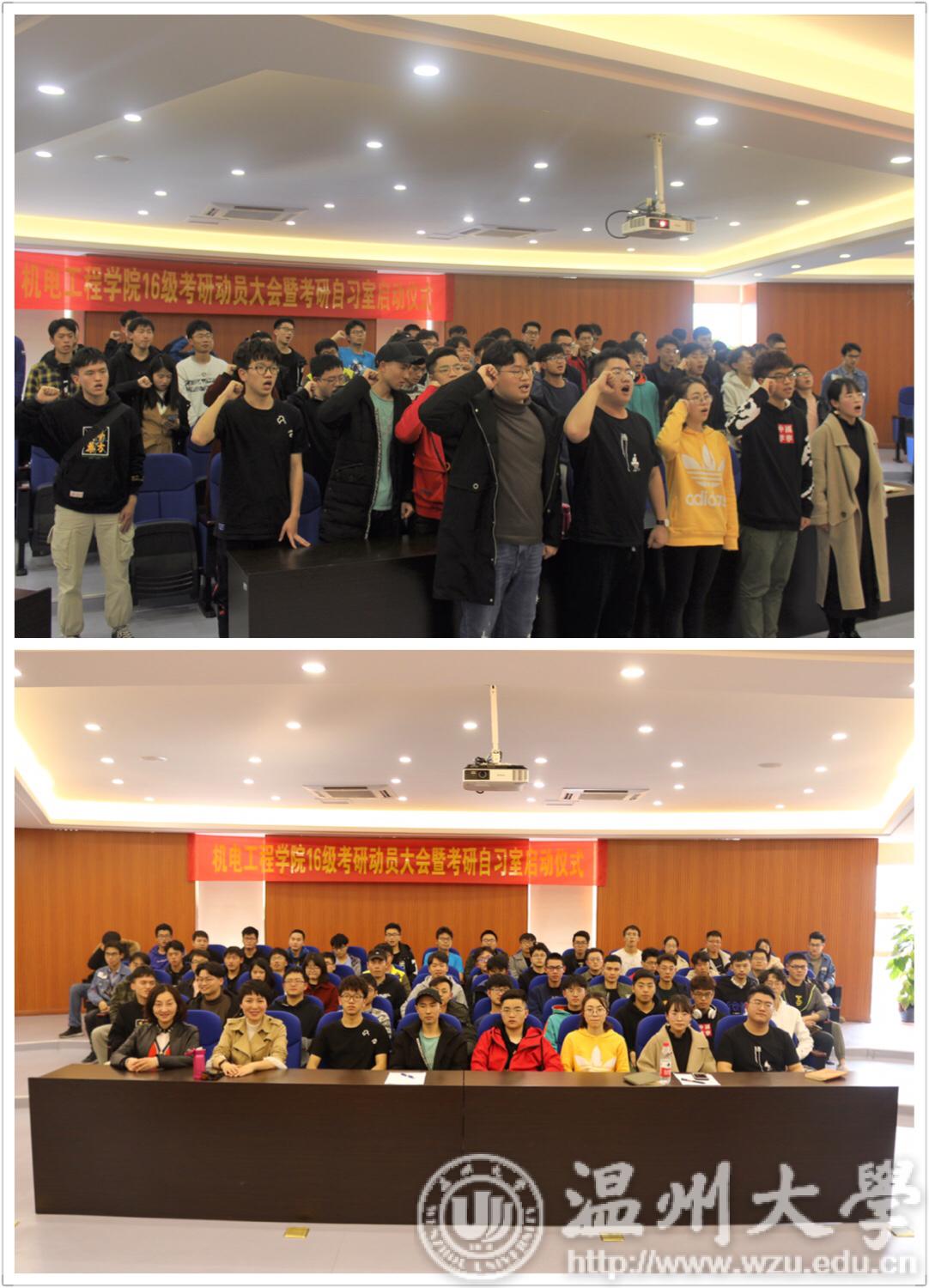 为调动色情小说 学生的考研积极性, 2019年3月13日下午15点在色情小说 B309报告厅召开了色情小说 16级考研动员大会暨考研自习室启动仪式。机电工程学院党总支副书记李密、学生科辅导员郑妤及16级考研同学参与了本次大会。18级刘群慧同学主持.