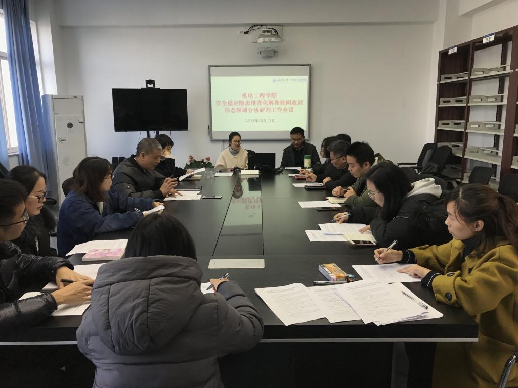 为深入贯彻中央和省委的部署要求,按照学校定期开展高校安全稳定隐患排查化解和校园意识形态领域动态研判工作的制度规定,色情小说 于2018年12月11日在学院6C401会议室召开2018年下半年学院安全稳定和意识形态领域分析研判工作会议。学院党总支书记周荣、副书记李密、各支部书记、系部中心主任及各科室负责人参加了会议。会议由党总支书记周荣主持。