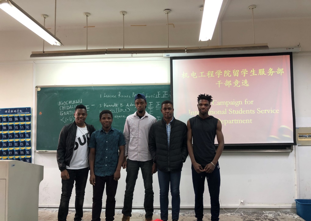 为了给留学生提供更好的服务平台,以加强中外学生的交流及更好地对接学院学生会,学院经过近半个学期时间的筹备,成立了留学生服务部。现场,5位留学生参加了干部竞选演讲,表达了自己的竞争意愿及今后努力的方向。通过最终的投票,研究生ADEYEMI KENNETH BAMIDELE以最高票当选部长,MUPFUKIREI LEAVEN ROMEO和MWANGOSI GAYO GABRIEL当选副部长。
