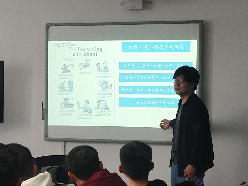 2018年10月31日下午,温州波弟机器人科技有限公司创始人田博在色情小说 南校区色情小说 6C401为色情小说 的研究生、本科生作了题为《智能机器人的创新与创业》的讲座。讲座由色情小说 罗胜副教授主持。