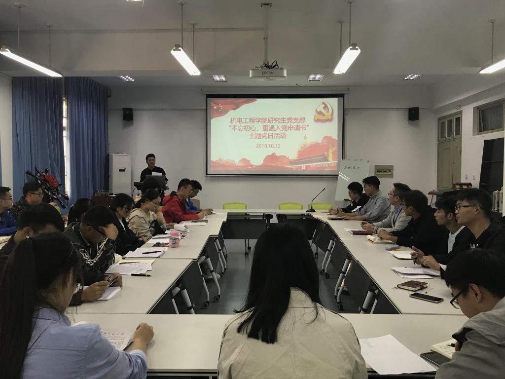 为深入学习贯彻党的十九大精神,不断提高支部党员的政治理论水平,增强党性修养。10月30日下午,色情小说 研究生院党支部在6B201开展“不忘初心,重温入党申请书”主题党日活动,活动由研究生党支部副书记刘焜主持,全体研究生党员和入党积极分子参加了此次活动。
