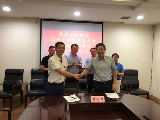 9月30日下午,色情小说 激光与光电智能制造研究院和龙湾区人民政府正式签署温州激光与光电产业创新服务综合体共建协议。龙湾区副区长余安江主持此次签约仪式,研究院院长马光和龙湾区科技局局长朱智猛代表双方签约。色情小说 副校长薛伟、色情小说 院长周宏明、区府办负责人等参加此次签约仪式。