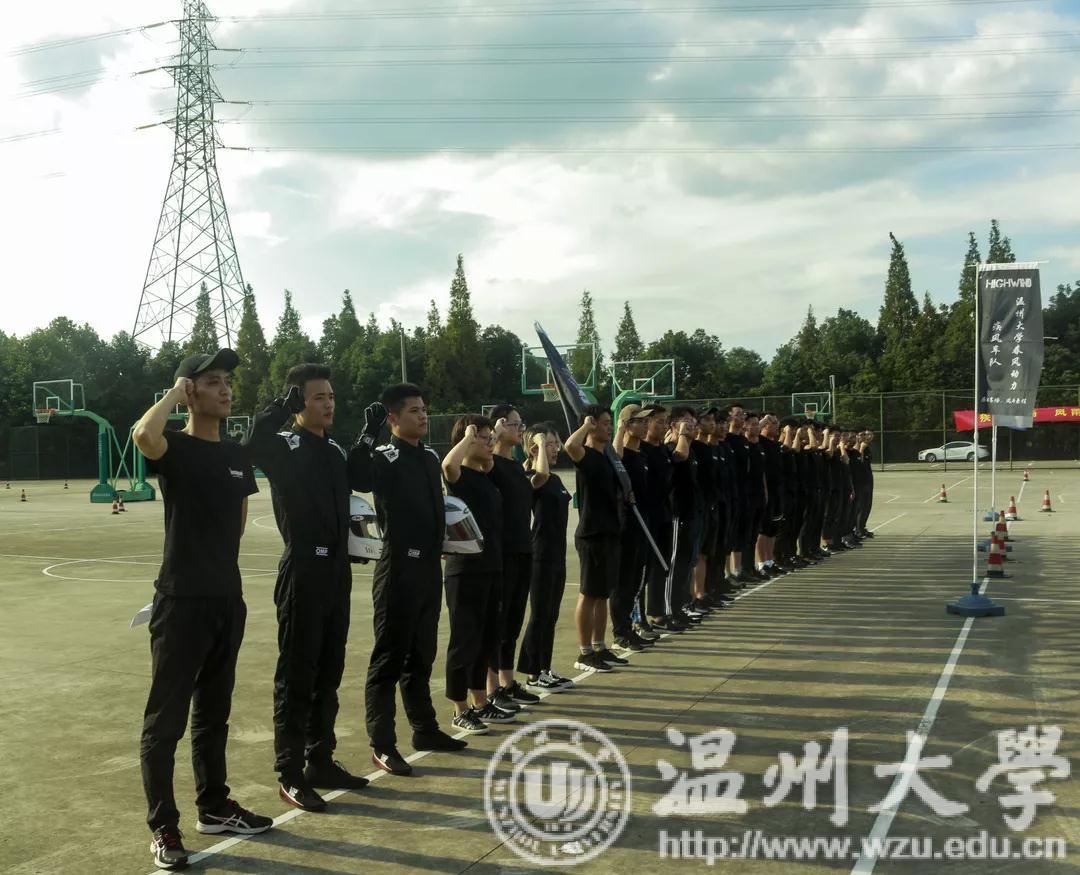 全体队员举起右手庄严宣誓:在此次比赛中,必将“自觉遵守赛事规则,牢固树立安全意识,积极探索,不断积累,充分发挥专业特长,发挥温大人敢为人先、求学问是的精神,展现温大学子风采,为校争光。”