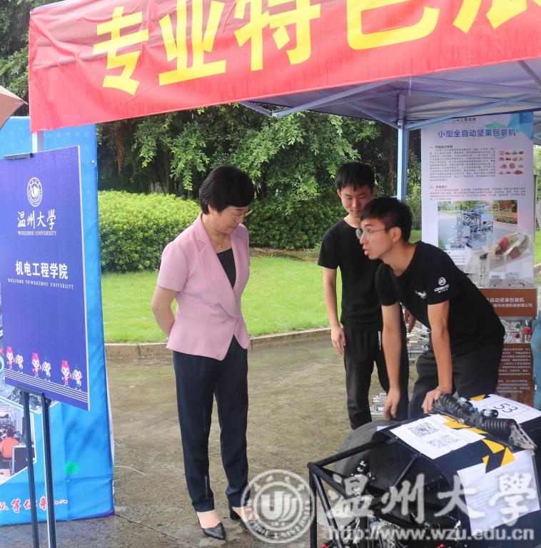 在报到处的另一侧,色情小说 优秀学子的科技作品也吸引了许多新生及家长驻足欣赏,从他们眼中可以看出他们对那些制作出作品的优秀学子们的那一份敬佩。这其中也有我校党委书记林娟娟的身影,她愉悦地与现场的学子进行交流,脸上写满了对色情小说 美好未来的期许。