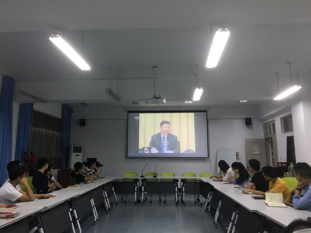 研究生党支部的党员们在6B201会议室集中收看了习近平总书记在全国教育大会上的讲话。