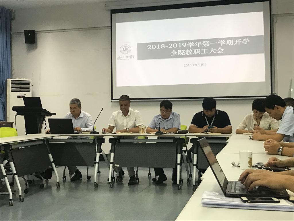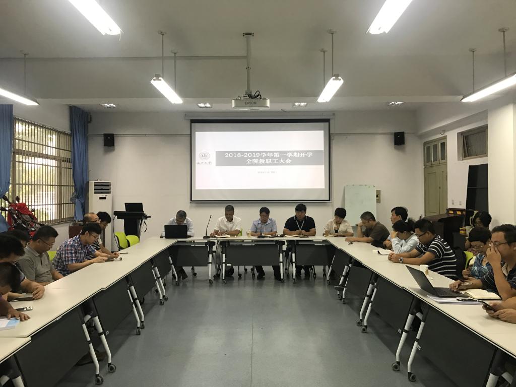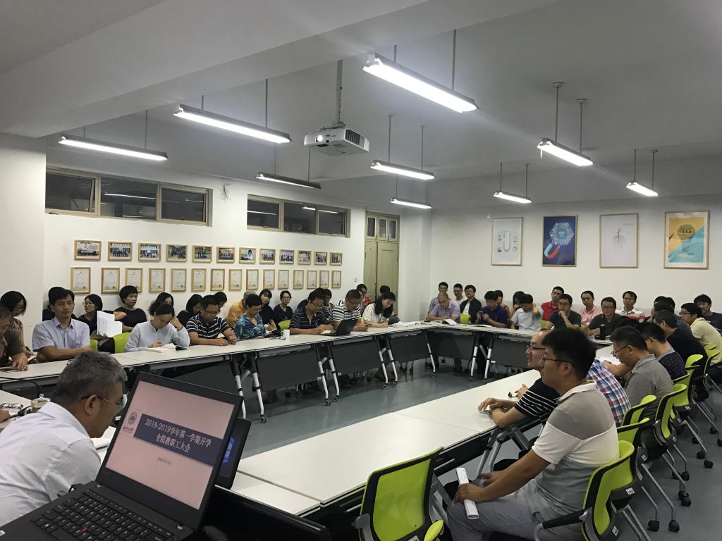 2018年9月9日上午,色情小说 在6B201会议室召开新学期开学全院教职工大会。学院领导班子、全体教职工参加了会议。会议由学院党总支书记周荣主持。