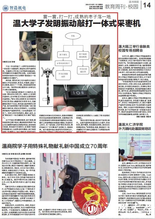 “红枣采摘目前主要是手工采摘为主,但这是一项耗时耗力的工作。随着人工成本的日益增长,红枣种植区对自动化设备的需求日益增加。”研发团队成员於卓成介绍着当时他们的想法:新疆的红枣非常有名,但新疆地区经济不发达,而农业又是当地的主要产业,他们就想着能不能为农民做一款小型辅助采摘机械,便宜又方便操作。以后要是真的能将产品推向市场,大家也算是做了好事了。历时大约半年的研发、测试,最终,这 款“振动敲打一体式辅助红枣采摘机”诞生了。