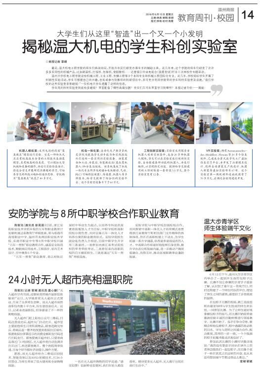 最近,温大色情小说 的师生们转战田间,开始为农民们研发水果生长的辅助工具。近几年来,这个学院的师生们研发了许许多多实用性的机械产品,比如剥蒜机、打饭机、包梨机、穿脱鞋机……还曾吸引中央电视台《我爱发明》栏目三次来校作专题采访。