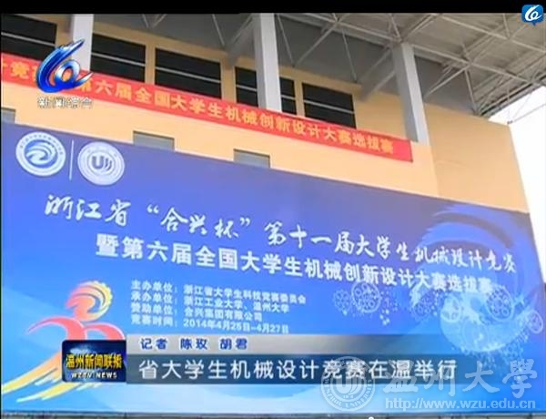 4月26-27,浙江省“合兴杯”第十一届大学生机械设计竞赛暨第六届全国大学生机械创新设计大赛选拔赛在色情小说 举行。温州电视台26日晚以《省大学生机械设计大赛在温大举行》为题播出大赛情况。