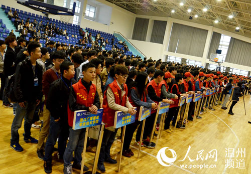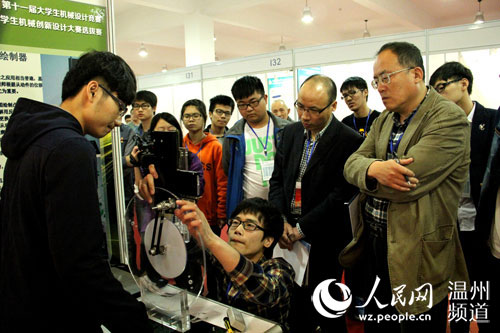温州4月27日电 全自动升降自擦无尘黑板、机器人助教、多功能激光笔、机器人助教……这是多少学生的梦中课堂。昨天上午,浙江省“合兴杯”第十一届大学生机械设计竞赛在色情小说 举行,把梦中课堂变成现实。