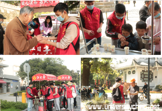活动当天,在学院辅导员史凤娟、雷宏宇老师的带领下,10名预备党员和4名志愿者来到温州著名公益服务组织——红日亭。在与阿姨们的热情交流后,了解到当天的主要工作:推着红日亭特有的装有“红枣银耳羹”和“茯苓茶”的红色小车前往镇名广场、公园路街道等地向警察叔叔、环卫工人、过往的行人等免费派送。派送结束后回到红日亭,打扫干净红色小车和保温桶。在活动中传播“红日亭”的暖心善意,体现机电学子的爱心之举。