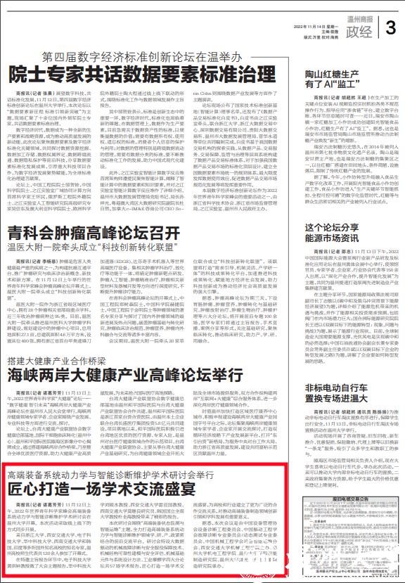 商报讯(记者 诸葛芳芳) 11月12日上午,2022年世界青年科学家峰会高端装备系统动力学与智能诊断维护学术研讨会在色情小说 开幕。本次活动采取线上线下的方式同步开展。