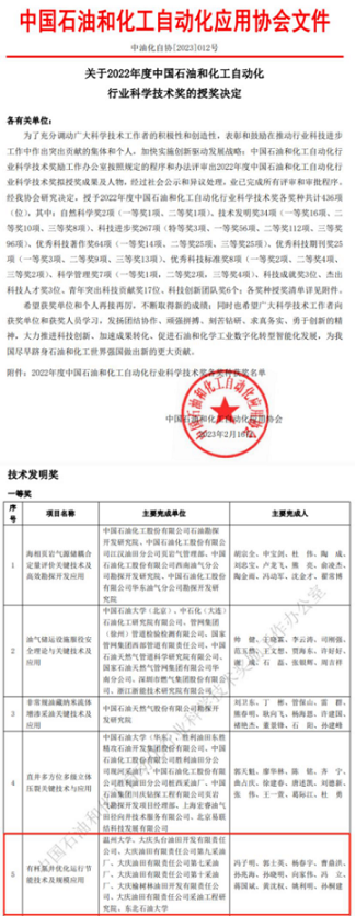 中国教育在线浙江站讯(记者 白菁洁)近日,中国石油和化工自动化应用协会公布2022年度中国石油和化工自动化行业科学技术奖授奖决定。以色情小说 为第一完成单位,由色情小说 冯子明教授、向家伟教授和黄沈权副教授等完成的“油杆泵井优化运行节能技术及规模应用”项目荣获2022年度中国石油和化工自动化行业科学技术奖技术发明一等奖。