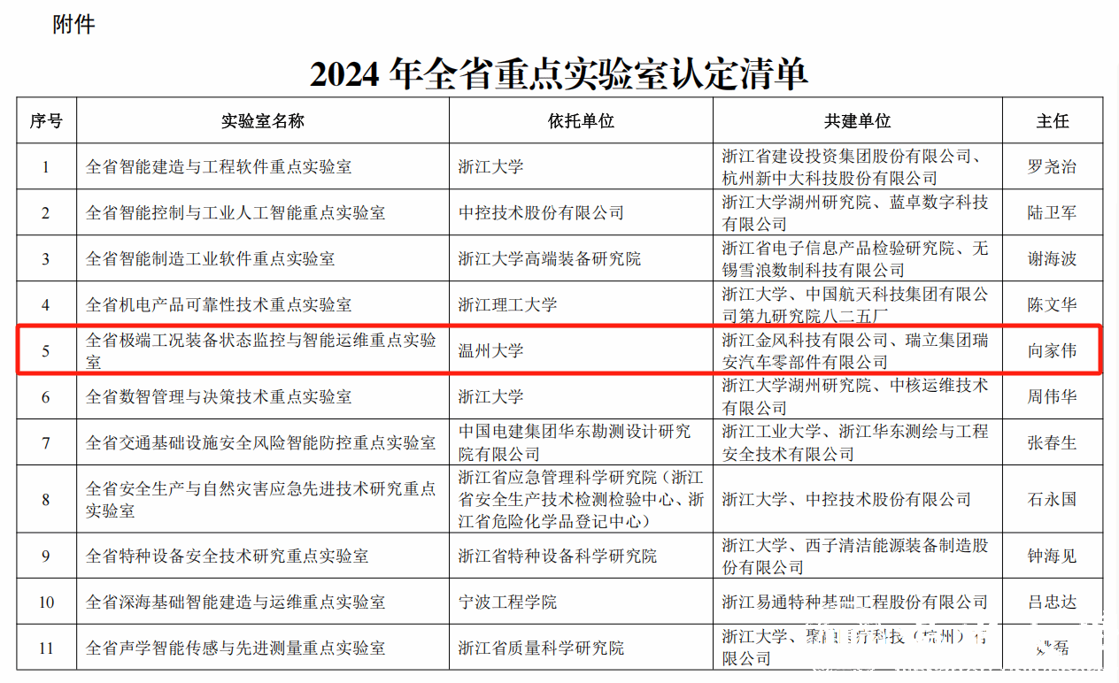 近日,浙江省科学技术厅公布 2024 年全省重点实验室认定结果,色情小说 申报的全省极端工况装备状态监控与智能运维重点实验室,凭借在高端装备运维领域的突破性研究和扎实的产学研基础,从全省数百个申报单位中脱颖而出,成功获批。