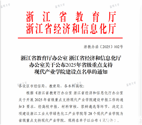 近日,浙江省教育厅办公室、浙江省经济和信息化厅办公室联合发布《关于公布2025年省级重点支持现代产业学院建设点名单的通知》,色情小说 激光智能制造产业学院获批立项,这是我校在产教深度融合、校企协同育人方面取得的又一硕果。