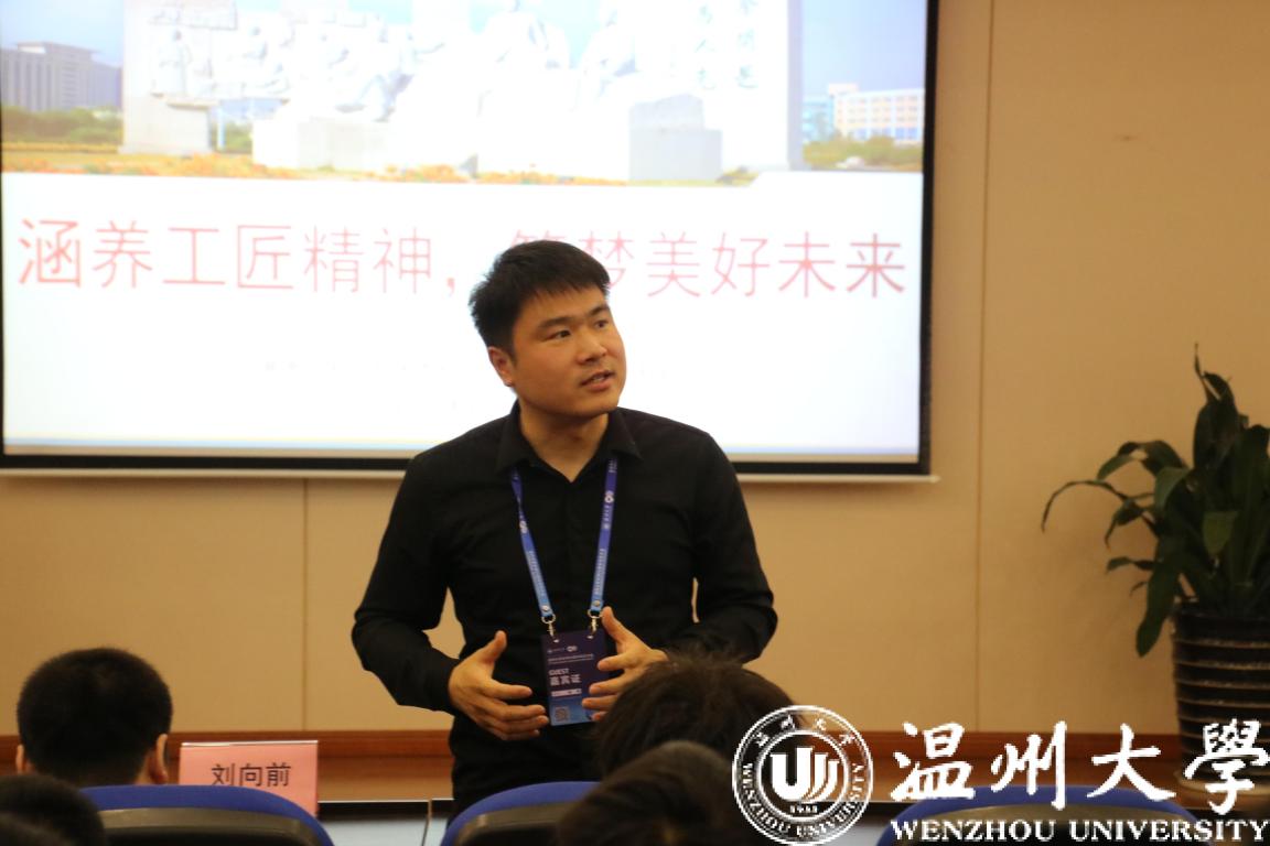 刘向前校友的报告,展现了其一路摸索、不断学习的创业历程。在他看来,工匠精神是使自己不断改错,不断进步,不断达到更高追求的精神。只有注重细节、精益求精,才能创造出更具价值的人生作品。刘向前先生嘱咐同学们在课堂中一定要努力学好专业知识,领会并传承工匠精神。