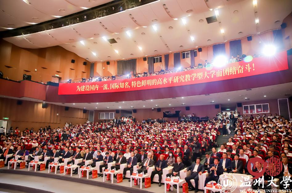 浙江省委教育工委委员、浙江省教育厅副厅长陈峰寄语温大坚守办学方向,坚持以人为本,坚定改革决心,坚决服务地方,表示将深化省市共建合作机制,推动温大发展更上新台阶。诺贝尔化学奖获得者哈特穆特·米歇尔赞扬了温大在科研、育才等方面取得的卓越成绩,期待开展更广泛的高水平合作,推动技术成果转移转化,培养更多国际化高端人才。