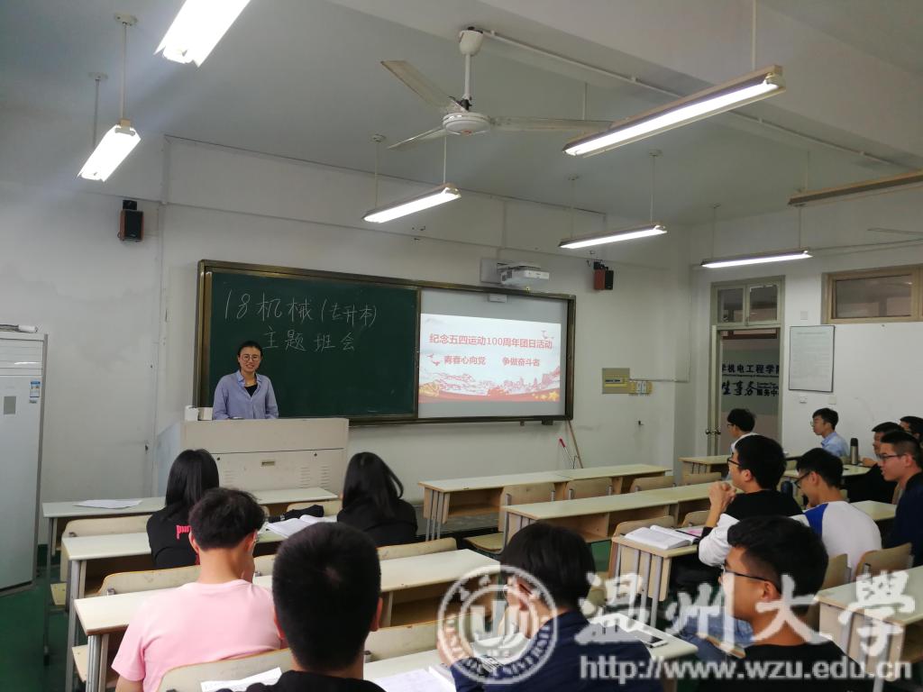 16工业工程全体同学在步青学区学生党员第十党支部的党员同志的带领下,学习了《习近平同志在纪念五四运动100周年大会的重要讲话》,并且详细解读了习近平同志对五四运动历史意义的高度评价、以“六点要求”深情寄语当代青年、如何做好培养青年工作和党与团关系。随后,邀请党支部同志和团支部同学就学习做个心得体会分享。16机械工程2班(卓工)同学以通过视频的方式重温了五四运动的历程,学习了五四精神,同学们也纷纷发表了自己的感悟。17机械工程2班(卓工)的同学特别邀请了马克思主义学院孙邦金老师向支部团员介绍了五四运动的背景及历史意义,全体支部团员还齐唱了团歌。17机械工程1班(卓工)、17工业工程、17车辆工程和18机械工程(专升本)的同学以五四为主题的演讲利用时间轴为同学们梳理了五四运动的经过及其意义,并且学习了《习近平同志在纪念五四运动100周年大会的重要讲话》,同学们纷纷发表自己的感想。18机械类1班和2班的同学开展了观看有关五四专题系列电影、合唱中国共青团团歌、同学们分享感想等活动,回顾五四运动历史,了解五四运动的背景,深刻学习五四运动精神。18机械工程1班、2班、3班同学则开展了五四运动知识竞猜活动,学习了《习近平同志在纪念五四运动100周年大会的重要讲话》,并且讨论了新青年在当代应如何发扬五四精神,同学们纷纷发表了自己观点与想法。