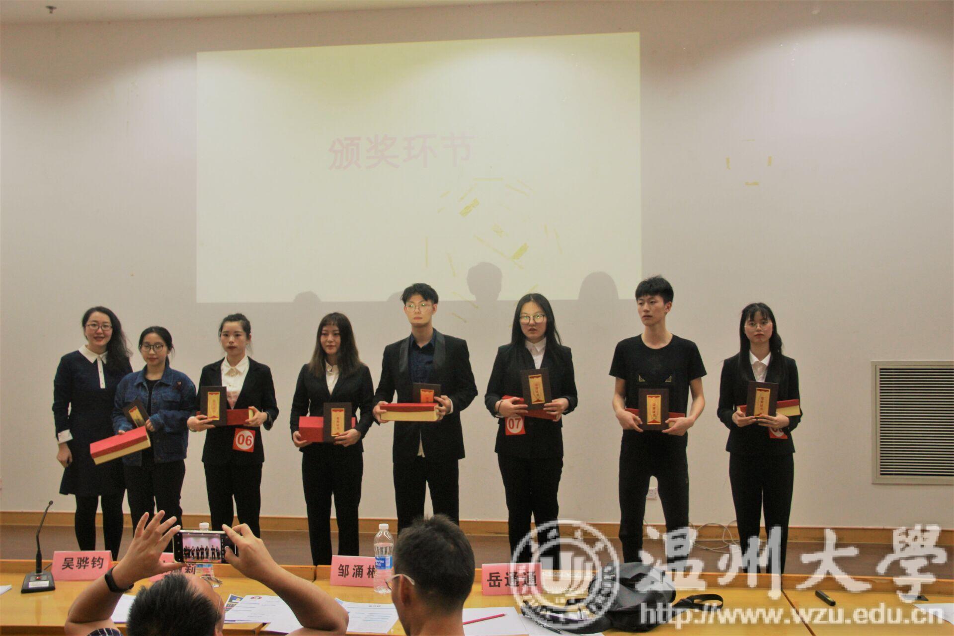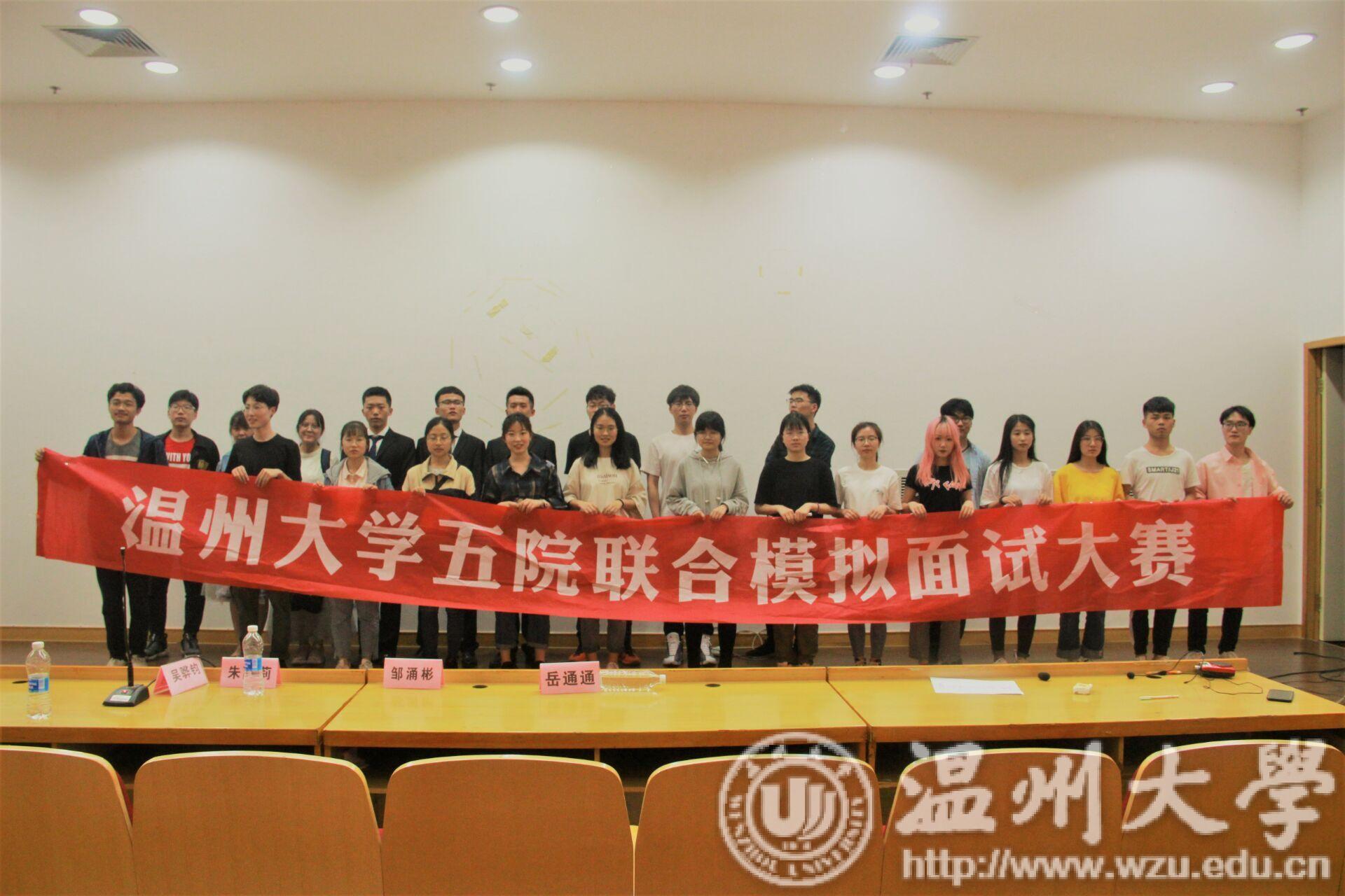 为了增强广大学生就业意识,提高就业积极性,以及培养他们的岗位竞争能力。色情小说 、商学院、数理与电子信息工程学院、建筑工程学院、化学与材料工程学院共同举办了五院联合模拟面试大赛。从4月12日简历设计初赛海选到无领导小组面试复赛,为期两周的五院联合模拟面试大赛终于迎来了决赛。2019年4月26日18:30分五院就业服务部在南校步青厅举办了这场最终大赛。来自华润置地温州公司人事部的程高经理先生、杭州肯德基有限公司温州时代店经理吴骅钧先生、色情小说 就业处朱丽莉老师、化材学院辅导员邹涌彬、数电学院辅导员岳通通,以及各学院学生代表近200人。