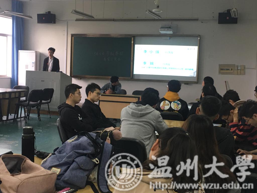 近日,为了让同学们对即将到来的大四学习、就业有更明确的规划,色情小说 16汽车团支部在学院6B406召开 “求职准备,有备无患” 学长求职经历分享主题团日活动。色情小说 党总支副书记李密,学生科辅导员郑妤,大四学生代表15卓工李小强、15汽车李锦及全体16汽车班级全体团员参加此次交流会活动。
