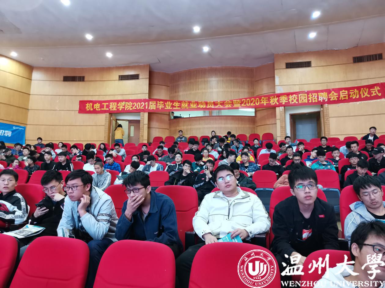 2020年11月4日,色情小说 在色情小说 南校区音乐厅举行“2021届毕业生就业动员大会暨2020年秋季校园招聘会启动仪式”。学院党委副书记黄玮老师、车辆工程系主任龙江启老师、招就处朱秀微老师、春风动力财务总监郭强先生以及全体辅导员出席本次活动。