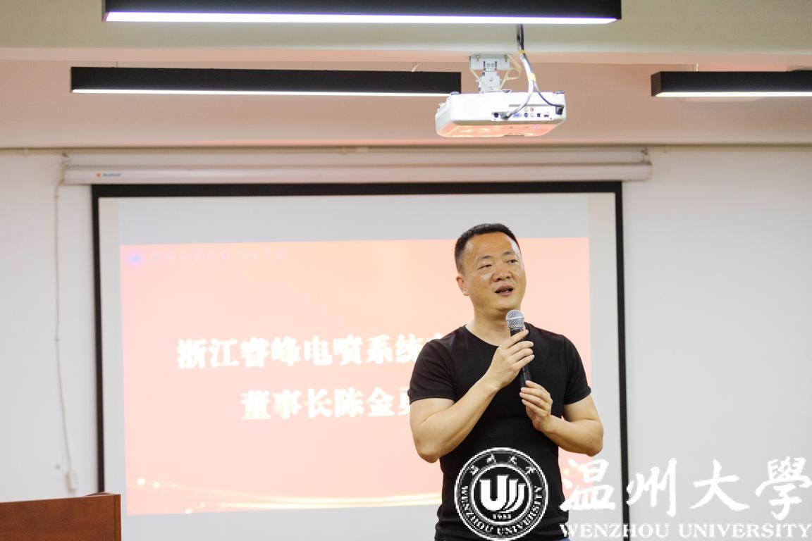 师生团队来到浙江新德宝机械有限公司和浙江睿峰电喷系统有限公司参观交流,了解平阳装备智造行业发展以及现代化工厂建设,对温州制造业企业有了一个全新的认识。我校96级校友、浙江睿峰电喷系统有限公司陈金勇董事长对来访的母校教师、学弟学妹代表表示热烈欢迎,表达求贤若渴、热忱欢迎温大优秀学子加盟睿峰的迫切心情。